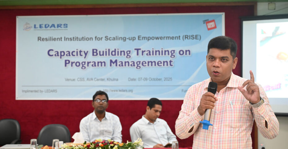 LEDARS organized a 3 day long ๐๐๐ฉ๐๐๐ข๐ญ๐ฒ ๐๐ฎ๐ข๐ฅ๐๐ข๐ง๐ ๐๐ซ๐๐ข๐ง๐ข๐ง๐ ๐จ๐ง ๐๐ซ๐จ๐ ๐ซ๐๐ฆ ๐๐๐ง๐๐ ๐๐ฆ๐๐ง๐ญ ๐ก๐๐ฅ๐ ๐๐ซ๐จ๐ฆ ๐โ๐ ๐๐๐ญ๐จ๐๐๐ซ ๐๐๐๐ for ๐๐๐๐ (๐๐๐ฌ๐ข๐ฅ๐ข๐๐ง๐ญ ๐๐ง๐ฌ๐ญ๐ข๐ญ๐ฎ๐ญ๐ข๐จ๐ง ๐๐จ๐ซ ๐๐๐๐ฅ๐ข๐ง๐ -๐ฎ๐ฉ ๐๐ฆ๐ฉ๐จ๐ฐ๐๐ซ๐ฆ๐๐ง๐ญ)ย project on 7-9 October 2025 at CSS Ava Center, Khulna. This flagship program has been implementing in Satkhira, Khulna and Bagerhat district funded by ๐๐จ๐ฆ๐ข๐ ๐๐๐ฅ๐ข๐๐, UK.